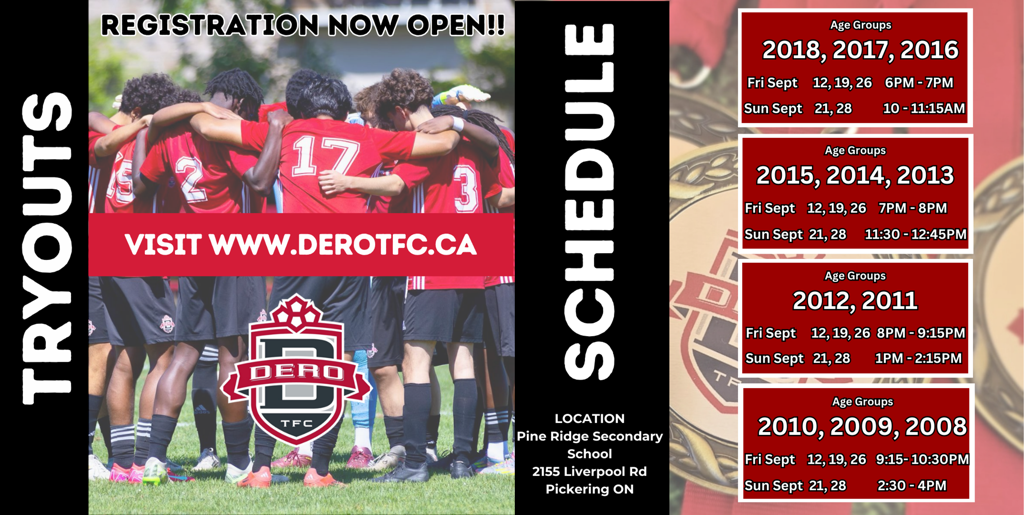 Dero TFC Academy is proud to be a member of Durham Region Soccer, Ontario Soccer, and Canada Soccer. With quality soccer programs and expert coaching, players of all ages and abilities can reach their full potential on and off the field. Join the academy and be a part of a supportive and dynamic soccer 'FAMILY'. The academy is committed to creating a positive environment and helping players reach their goals. Be a part of something special at Dero TFC Academy.
